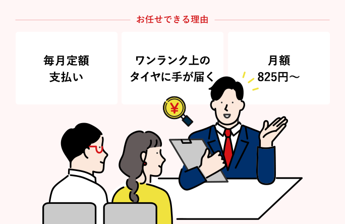 - 交換・保管・補償などワンストップで管理でき、万が一のパンク時も補償で安心。