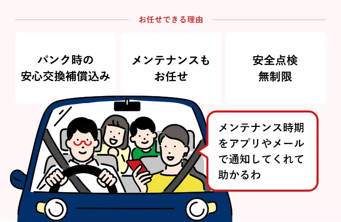 えっ、パンク補償や点検まで含まれているんですか!それはすごい!