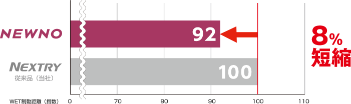 NEWNOは、その声を反映して、ネクストリーの低燃費性能はそのままに、『ウェット性能』と『耐摩耗性』を大幅に強化したんだよ。
